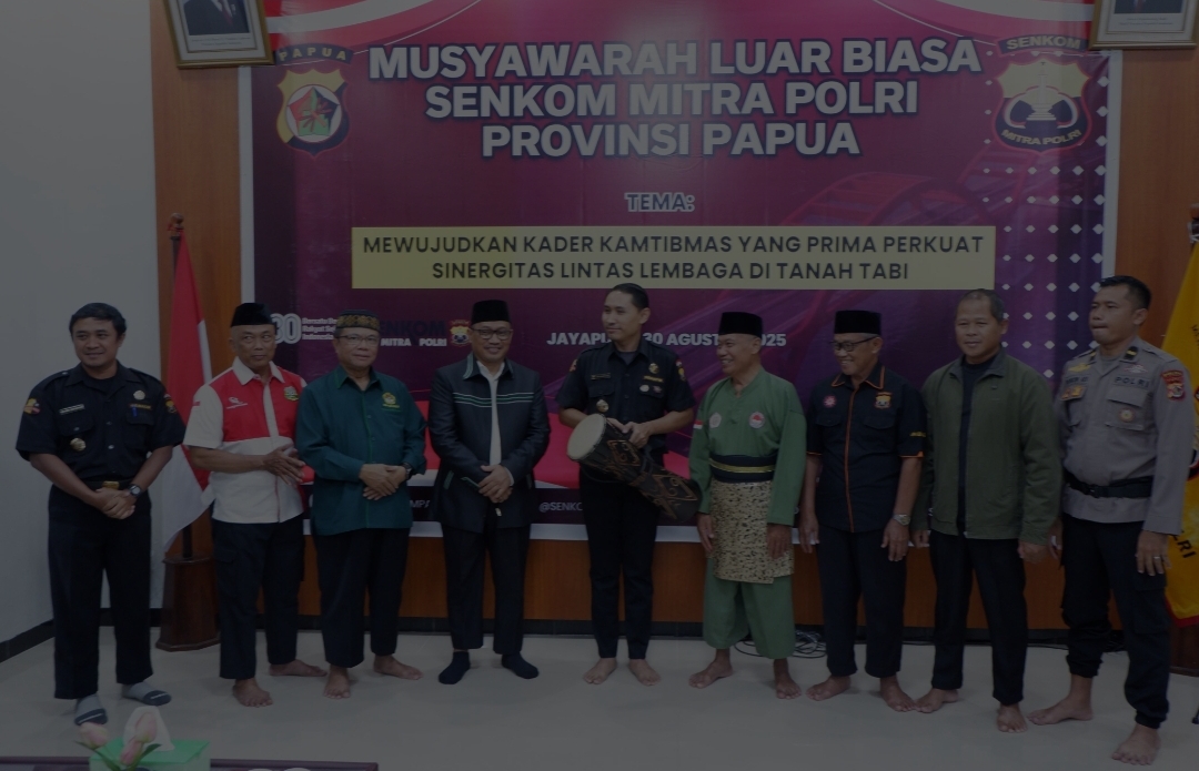 JAYAPURA – Kliklinknewsaja.com : Sentra Komunikasi (Senkom) Mitra Polri Provinsi Papua melaksanakan musyawarah provinsi luar biasa (Musprovlub) mengganti ketua baru di Aula PPPM Al-Manshurin, Distrik Heram, Kota Jayapura, Provinsi Papua, Sabtu (30/8/2025).