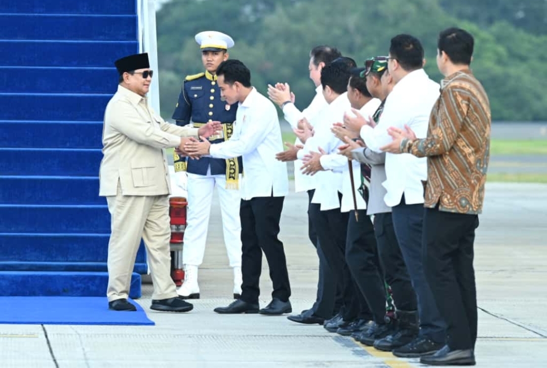 Bersama para Pejabat tinggi negara lainnya, Wakil Presiden (Wapres) Gibran Rakabuming menyambut kedatangan Presiden Prabowo Subianto di Pangkalan TNI AU Halim Perdanakusuma, Jakarta, Sabtu (27/09/2025) sore. Kepala Negara tiba sekitar pukul 15.30 WIB setelah menuntaskan rangkaian kunjungan kerja ke empat negara mitra strategis, yakni Jepang, Amerika Serikat, Kanada, dan Belanda.